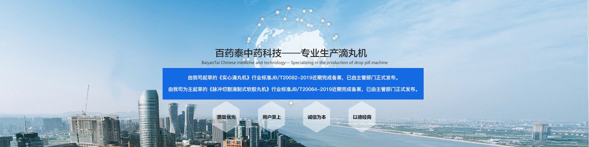 為了將滴丸機(jī)及其他設(shè)備事業(yè)做強(qiáng)做大,于2003年專門成立了煙臺百藥泰中藥科技有限公司從事滴丸工藝制備及滴丸機(jī)的生產(chǎn)與銷售。公司生產(chǎn)的DWJ-2000系列滴丸機(jī)構(gòu)思巧妙,性能穩(wěn)定,造型美觀大方,操控安全可靠,符合GMP認(rèn)證要求。由于采用了可調(diào)式減壓氣路,真空控制回路,藥液和冷卻溫度可自動控制等一系列自動化精密滴定技術(shù),使得滴丸定量準(zhǔn)確,成型圓滑,達(dá)到了一次成型的良好效果。