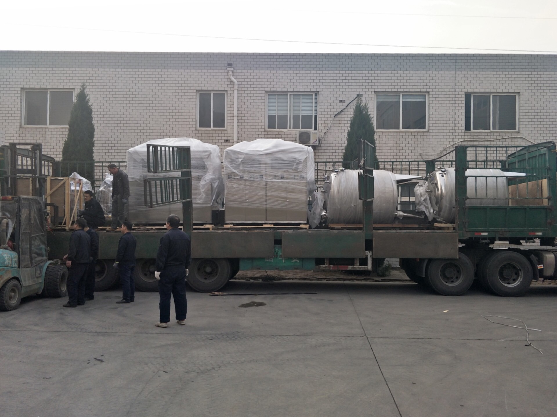 客戶定購的兩套400孔滴丸生產(chǎn)線正在裝車發(fā)運(yùn)。